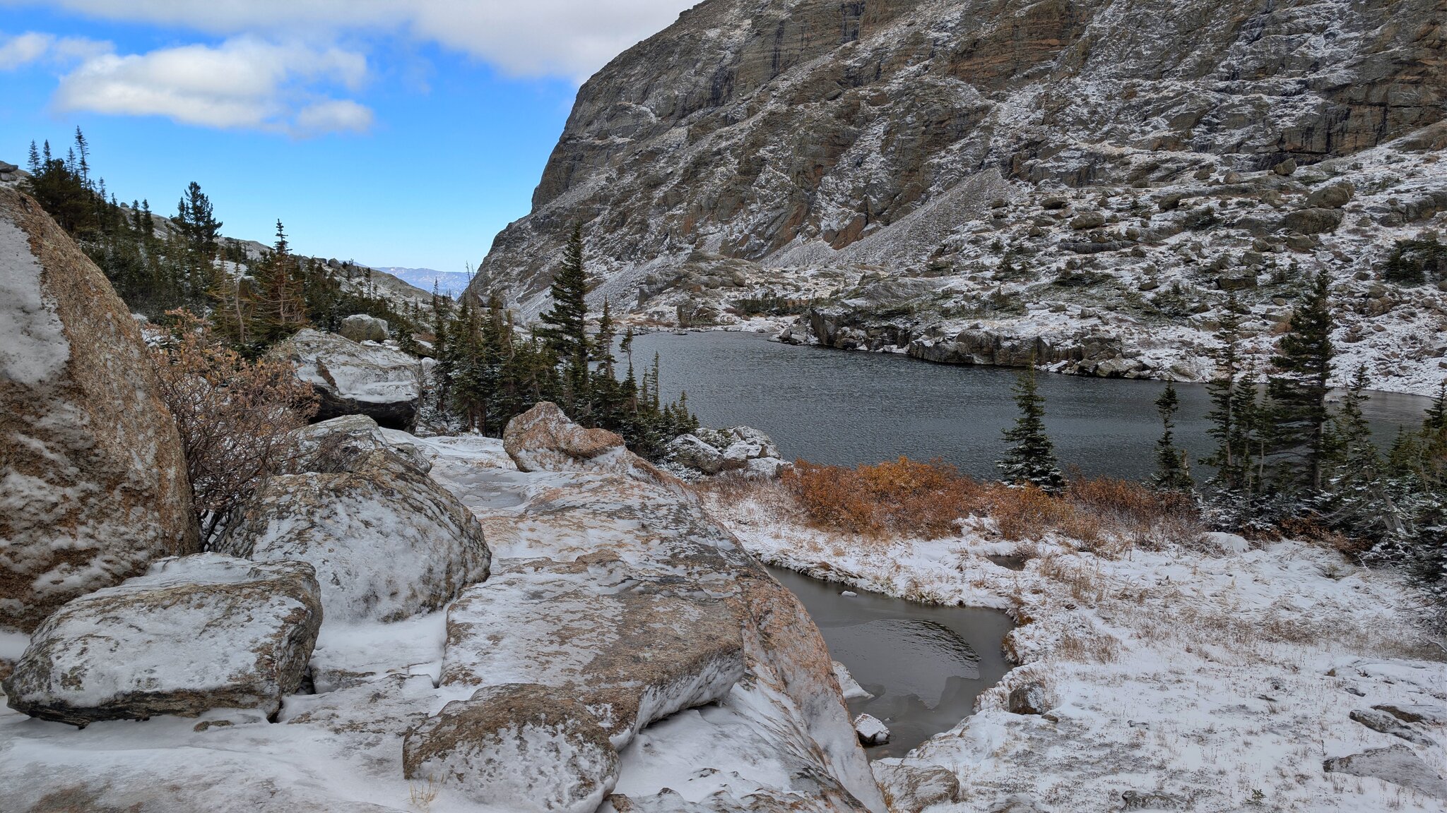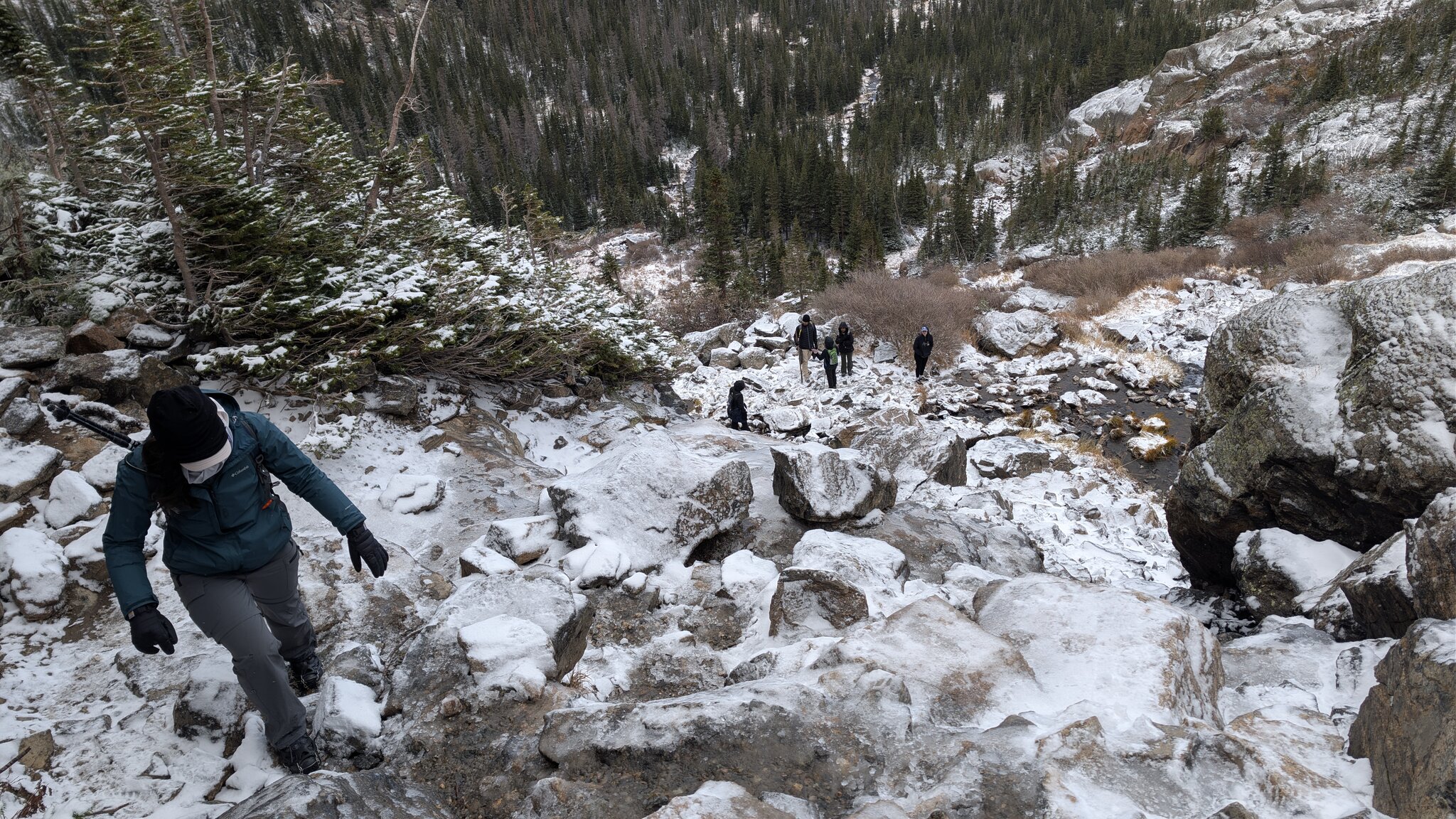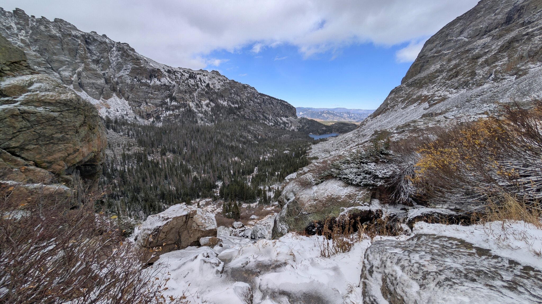 The hike to Sky Pond in Colorado was one of those trails that perfectly captures the spirit of the Rockies—dramatic, challenging, and deeply rewarding. Starting from the Bear Lake Trailhead, the route passed rushing waterfalls, alpine lakes, and steep rocky secti